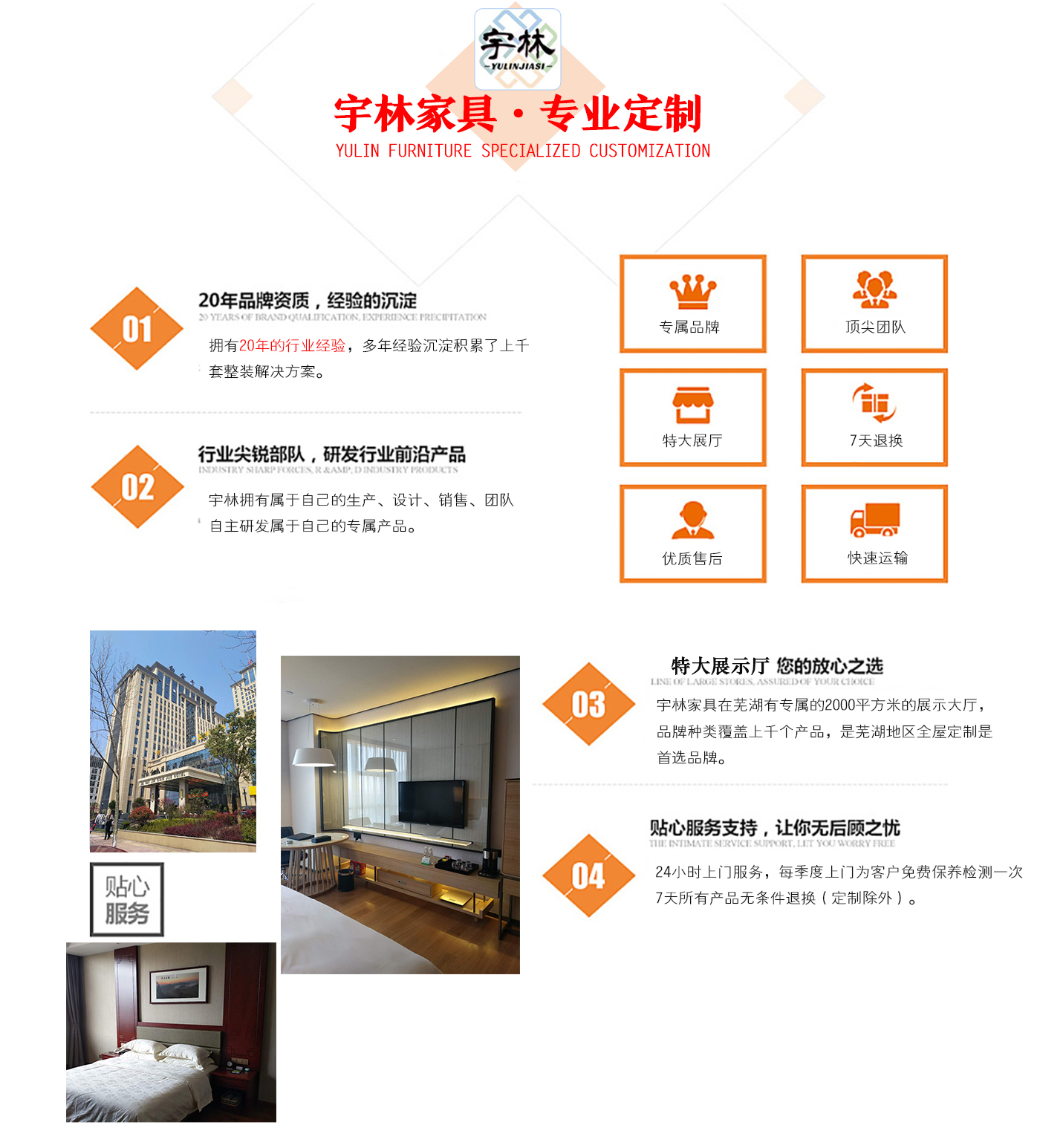 蕪湖宇林工貿(mào)有限公司創(chuàng)建于1996年,位于蕪湖高新技術(shù)開發(fā)區(qū)南區(qū),占地面積13000余平方米。是一個(gè)集研發(fā)、設(shè)計(jì)為一體的綜合性公司,公司主營整體家居定制、酒店家具定制、娛樂場(chǎng)所配套家具以及軟體系列,團(tuán)隊(duì),銳意革新、進(jìn)去不息的理念,逐漸成為蕪湖家具行業(yè)的生產(chǎn)廠家,并在2006年注冊(cè)了“宇林”牌商標(biāo)。宇林品牌家具依現(xiàn)代與古典相結(jié)合的多種實(shí)木家具、實(shí)木貼皮家具。家具做工精細(xì),多用人工雕刻;其自然、典雅的風(fēng)格在很大程度上引導(dǎo)著人...